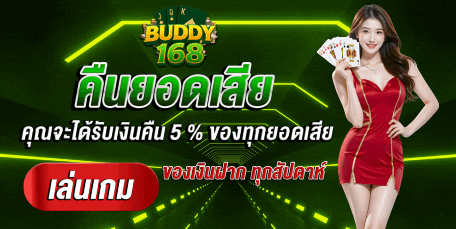 เพื่อนๆ ที่เล่นเสียไม่ต้องกังวล เพราะทาง buddy168 มีโปรโมชั่นคืนยอดเสียให้ทุกสัปดาห์ ช่วยบรรเทาความเสียหายและให้โอกาสในการเล่นต่อ โดยคำนวณจากยอดเสียสะสมตลอดสัปดาห์ ยิ่งเล่นมาก ยิ่งได้รับเครดิตคืนมาก ทำให้การเล่นพนันออนไลน์สนุกและมีความเสี่ยงน้อยลง